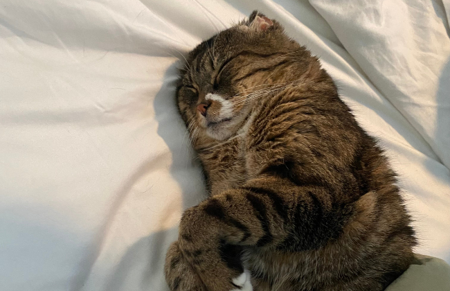 I wanted to reach out to let you know that Tigger is still doing fantastic and had a very happy Christmas. We have developed many nicknames for him, and he now primarily goes by Tiggies and Tigothy. Santa Paws spoiled him with a full stocking of toys and treats and a special bandana. Since bringing him home Tiggies has built up muscle mass on his hind legs which seems to have helped his mobility. He enjoys his special kidney diet (especially the wet food) to help his very early stage kidney disease. He plays everyday and has a special connection with his felt acorn and rainbow wand toy. We have also discovered Tigger is quite a foodie! I was hesitant at letting him try ‘human foods’ as I feared it would hurt his stomach, but there has been no ill effect whatsoever, and I figured he’s just an old man who deserves it! He loves chicken, beef, egg, and would trade me for a bite of a chip I think (All given in very sparingly portions of course). He even got to dress up for Halloween as a Pixar Lamp for a whole week while an ear infection healed. He keeps my boyfriend and I company when we work from home and often provides professional assistance by sitting on the keyboards and always sits in on meetings to provide his expert opinions, our coworkers greatly appreciate his insight. Tigger is the most lovely old man who has brought so much joy to everyone who has met him, he’s gentle, playful and the best lap cat who adores being with his humans. We’re not sure what his previous Christmas's were like but I know the rest of his will be filled with so much love, warmth and full bellies. We are wishing all the animals in your care a wonderful holiday, and hope next Christmas they have their forever families too.